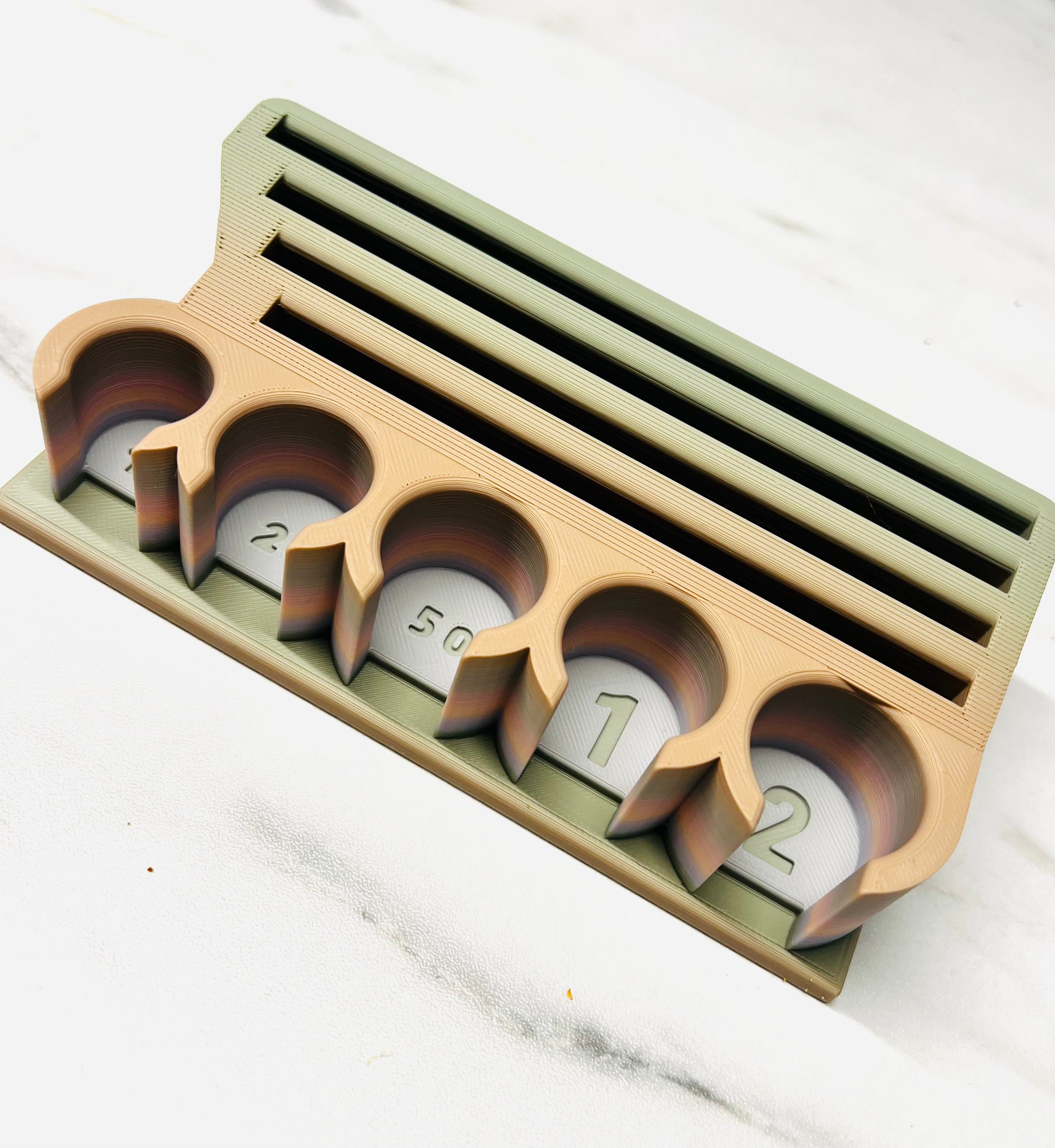Achtung wir produzieren auf Anfrage ! Einfach Farbe Wählen und wir produzieren den Ständer direkt. Geldständer aus dem 3D Drucker für Scheine (von 5-50 Euro) und Münzen ( von 2 Euro bis 10 Cent) in schimmernder Farbe ( Hellblau und Rosa mit Metallic/Glanz Effekt) . Gewicht ca 130 Gramm. Da es sich um ein 3D Drucker Produkt handelt kann es je Model zu leichten Farbschwankungen kommen. Jedes Teil ist farblich einzigartig . Solltest du andere Farben wünschen , schreib uns gern an.
